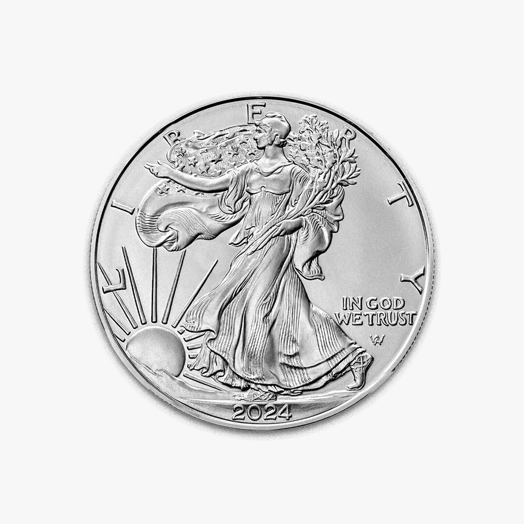The 2024 edition showcases the iconic Walking Liberty design on the obverse;
