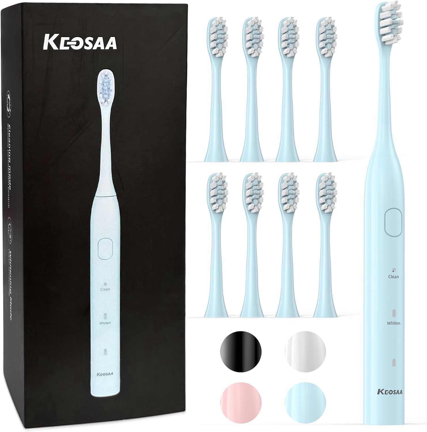 4 Replacement Heads Sonic Soft Electric Toothbrush – 6 Modes, Smart Timer, Rechargeable USB, Sensitive Gums and Teeth, Unscented, Lithium Battery, Oral Hygiene for Unisex Adults