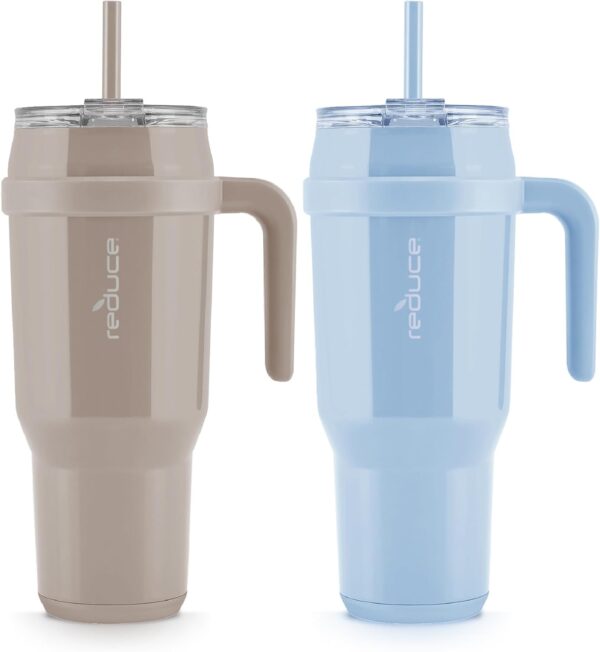 REDUCE 50 oz Tumbler with Handle, 2 Pack – Vacuum Insulated Stainless Steel Mug with Sip-It-Your-Way Lid – Keeps Drinks Cold up to 50 Hours – Sweat Proof, Dishwasher Safe, BPA Free – Glacier and Sand